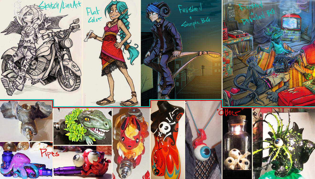 | Character/Object Digital Art Illustrations: | Pipes, Physical/Traditional Art, Jewelry, etc: |